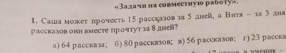 Выясним, сколько могут прочесть рассказов Саша и Витя за один день вместе:
