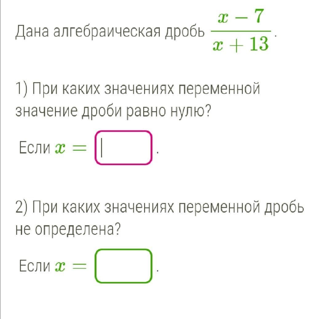 x=7 (равен нулю)