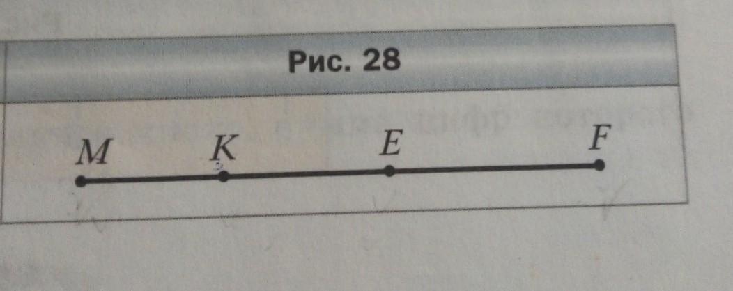 Известно, что MF = 30 см, ME = 18 см, KF = 22 см (рис. 28). Найди-