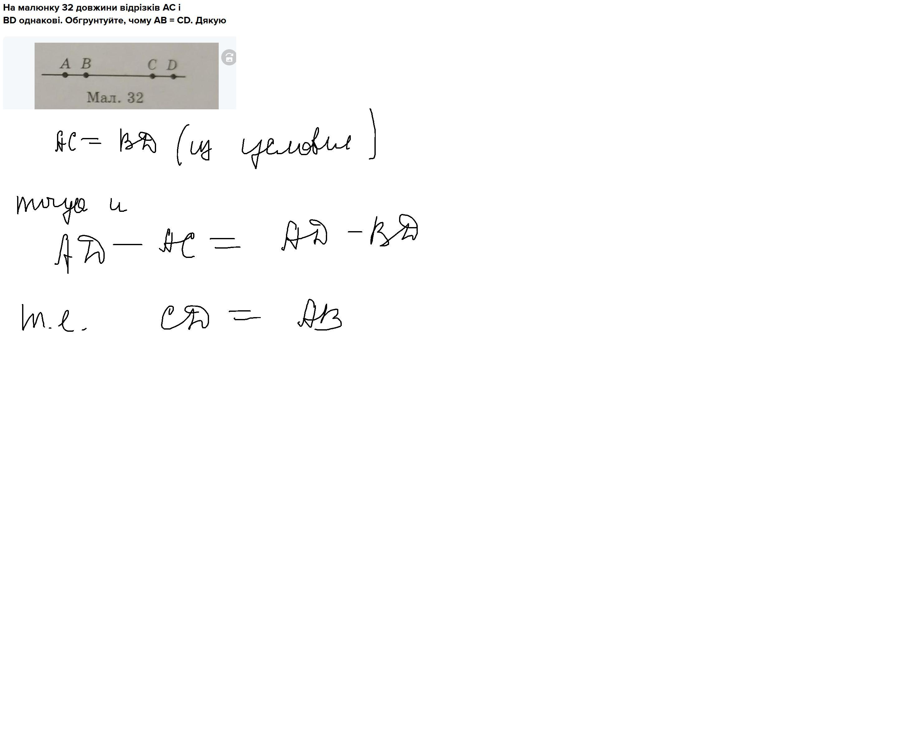 BD однакові. Обгрунтуйте, чому AB = CD. Дякую