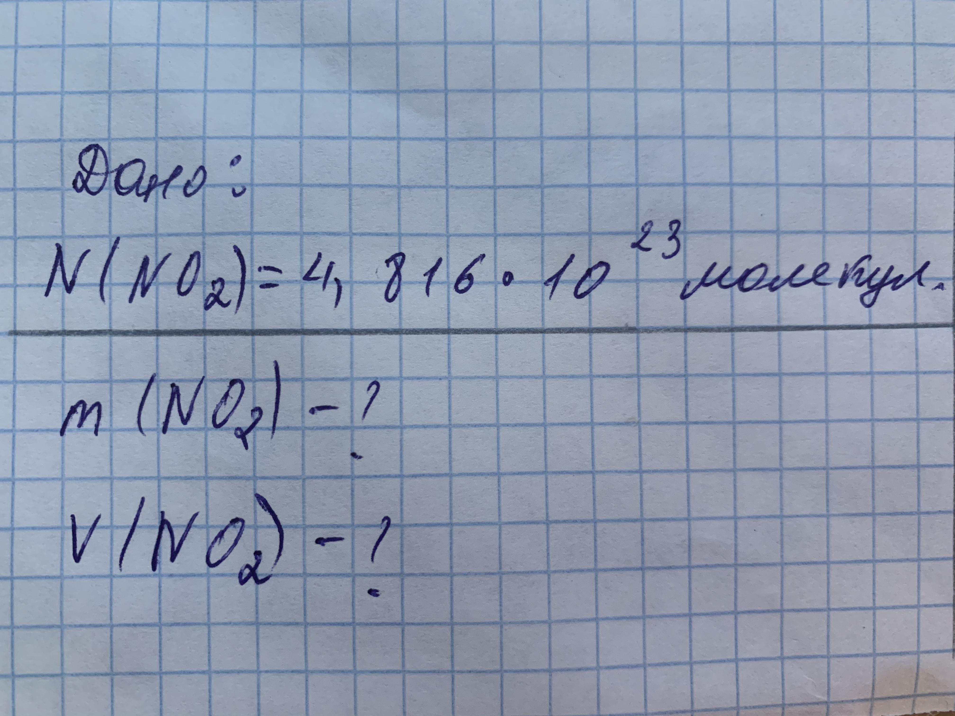 (ню)n(NO2) = 4.816*10^23 : 6.02*10^23 = 0.8 моль
