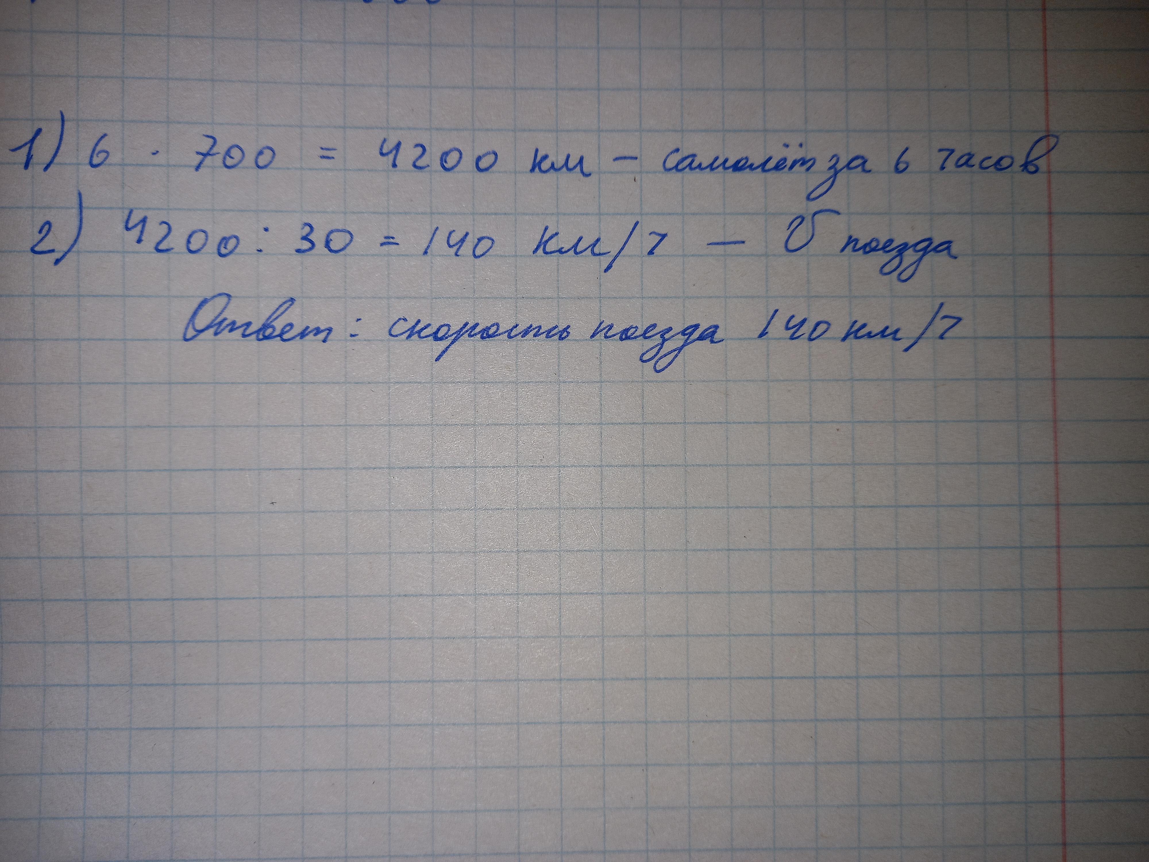 1) 6•700 =4200км - расстояние, которое преодолел самолёт( так же поезда)