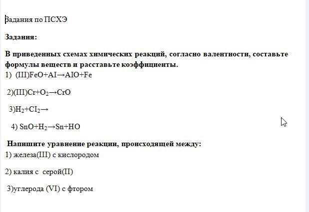 В приведенных схемах химических реакций, согласно валентности, составьте
