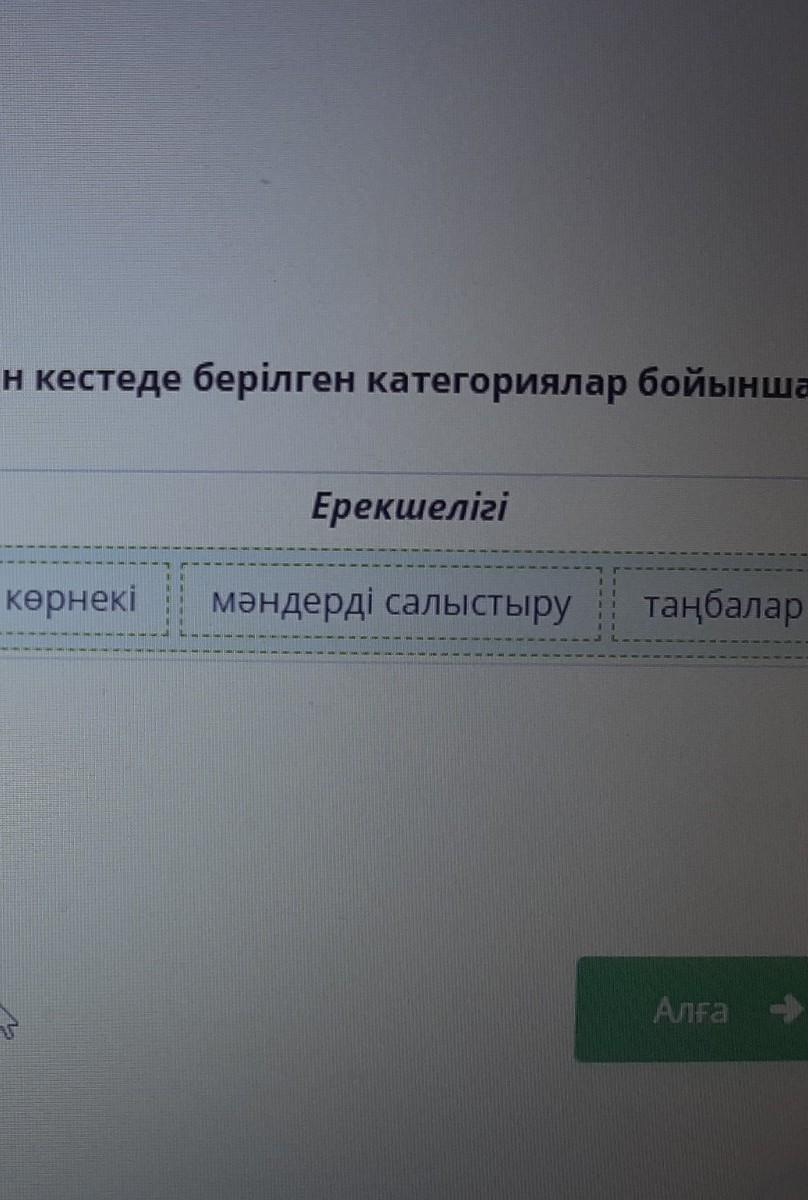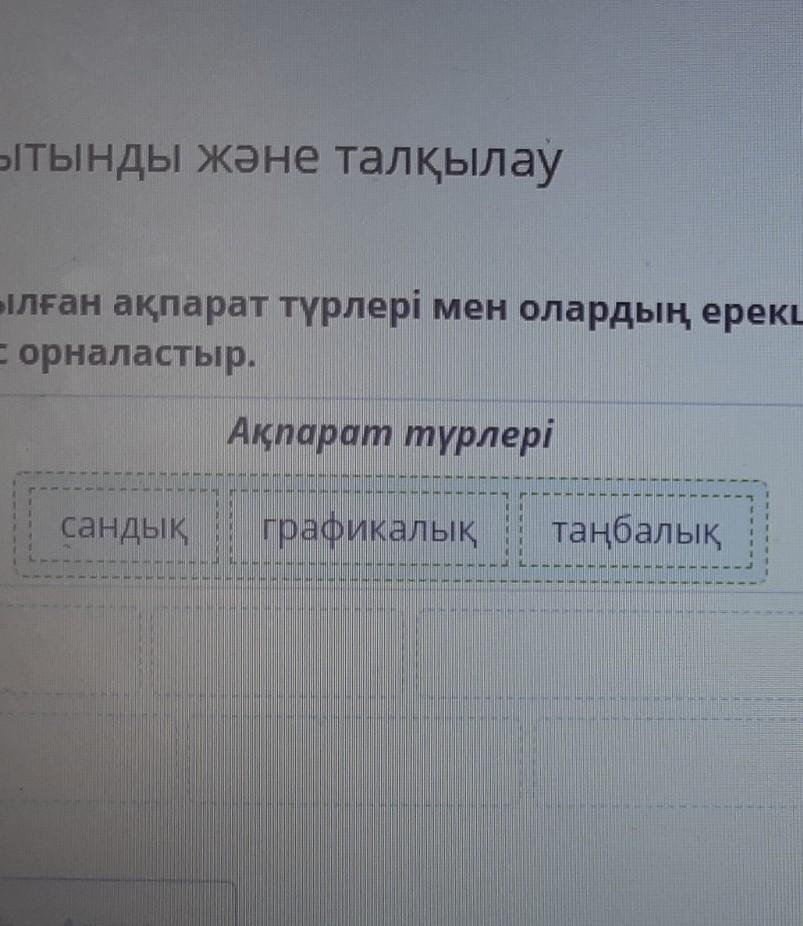 Ұсынылған ақпарат түрлері мен олардың ерекшеліктерін кестеде берілген категориялар бойынша дұрыс орналастыр.
