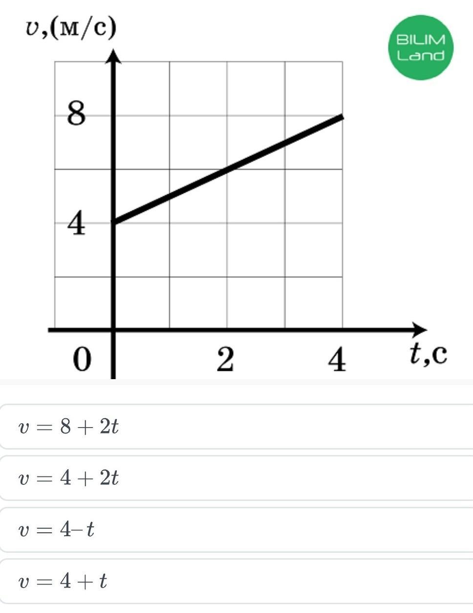 Берілген жылдамдықтың уақытқа тәуелді графигін пайдаланып, жылдамдық теңдеуін анықта.