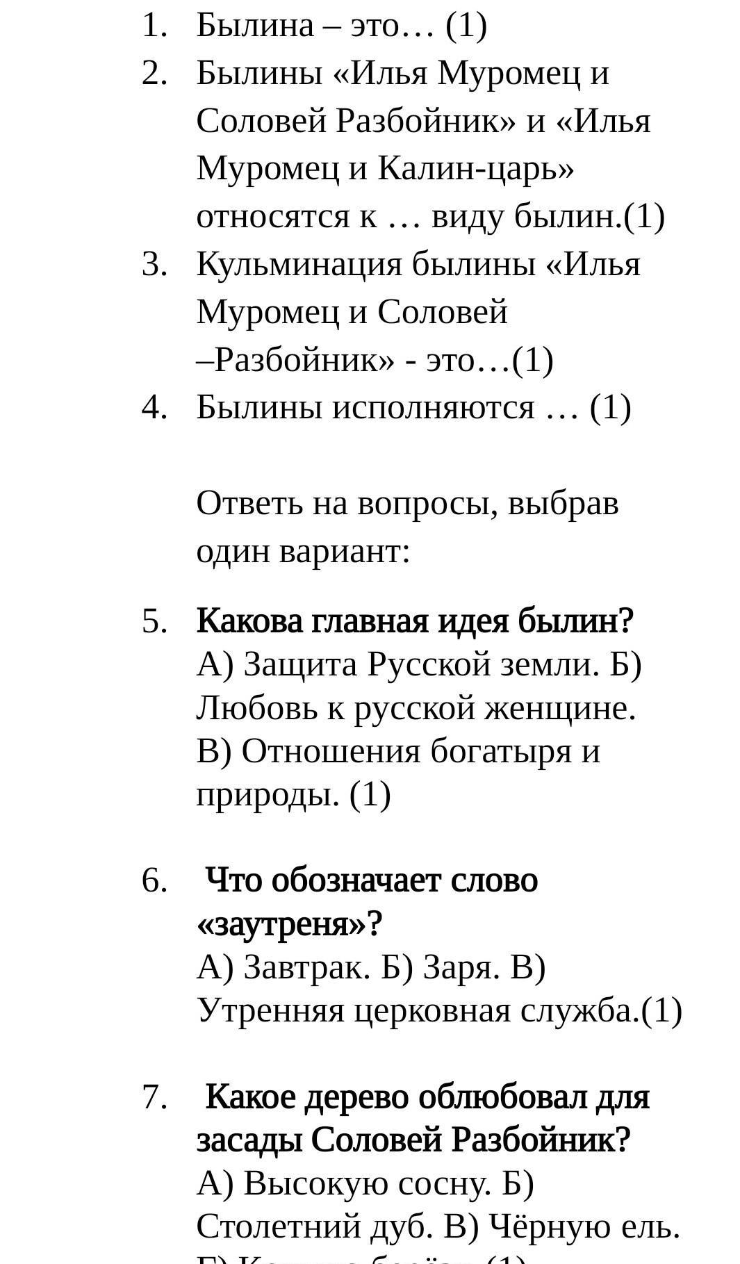1. Былина-Русская народная эпическая песня о богатырях.