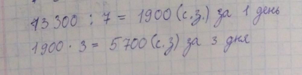 1) 13 300:7=1900(с.з)-1 день