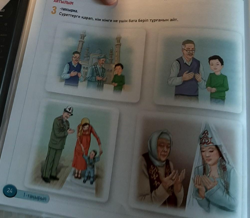 1. Молда мешітке келген адамға бата беріп жатыр.