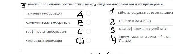 срочно бомогиде божалуста даю 5 звёздстанови правильное соответствие между видами информация и их примерами