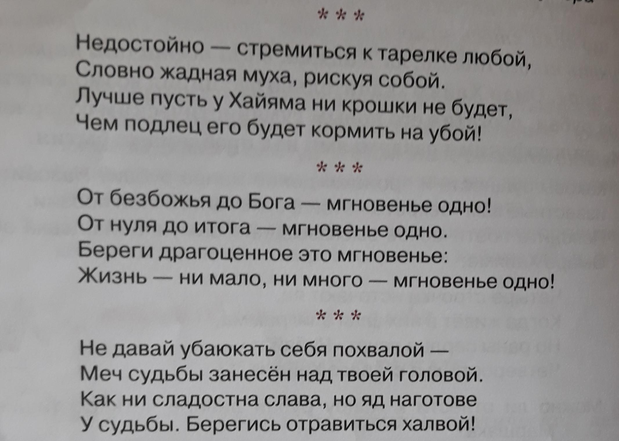Я имел ввиду, у каждой рубайи какая главная мысль?