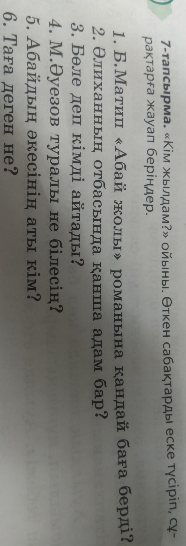 1. “Шынында, бұл қазақтар — неткен ғажайып халық! Осы кереметтік “Абай” романында қандай тамаша суреттелген!” деп Б.Матип романға жоғары баға берді.