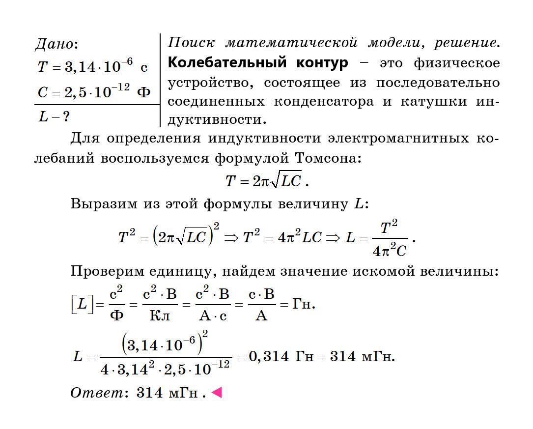 Определить индуктивность колебательного контура, если период его колеба¬ний 3,14 мкс, а электроёмкость 2,5 пФ.