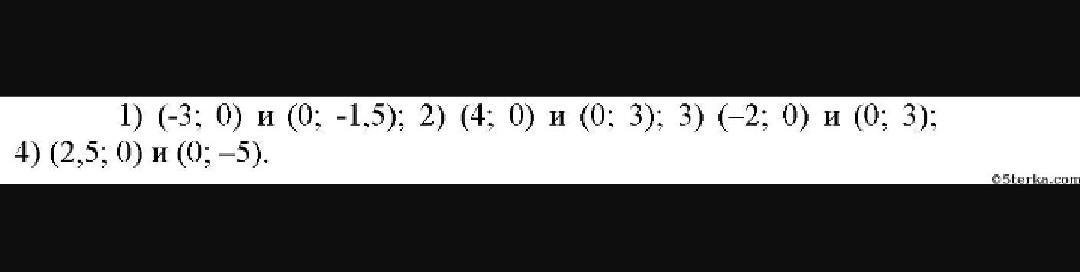 Значит, точка пересечения (0; -1,5). Получаем, что точки пересечения с осями координат (-3; 0) и (0; -1,5). Задачи 2), 3) и 4) решаются аналогично.