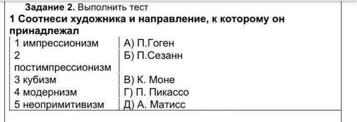 1В, 2Б, 3Г, 4А, 5Д