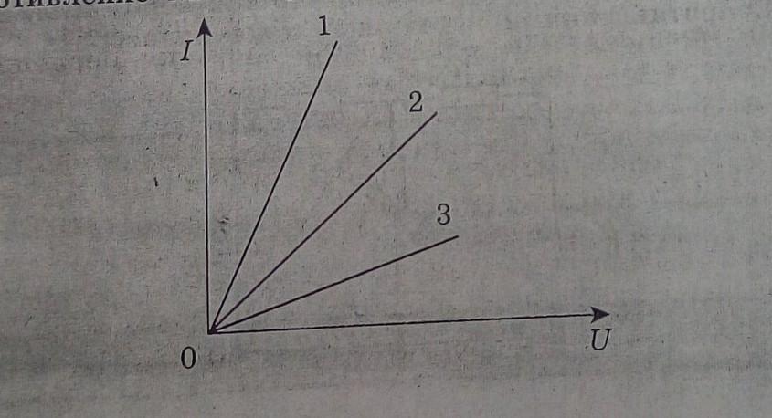 4. На графике представлена зависимость I = f(U) для трёх резисторов. Сопротивление какого резистора самое маленькое?