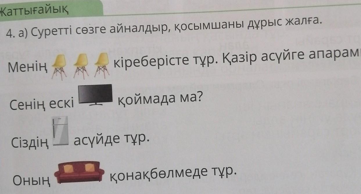 4. а) Суретті сөзге айналдыр, қосымшаны дұрыс жалға.