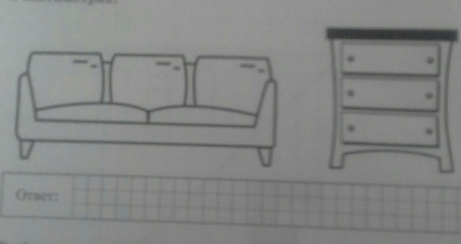 Мы видим ,что высота дивана составляет 3\4 высоты комода, то есть высота дивана