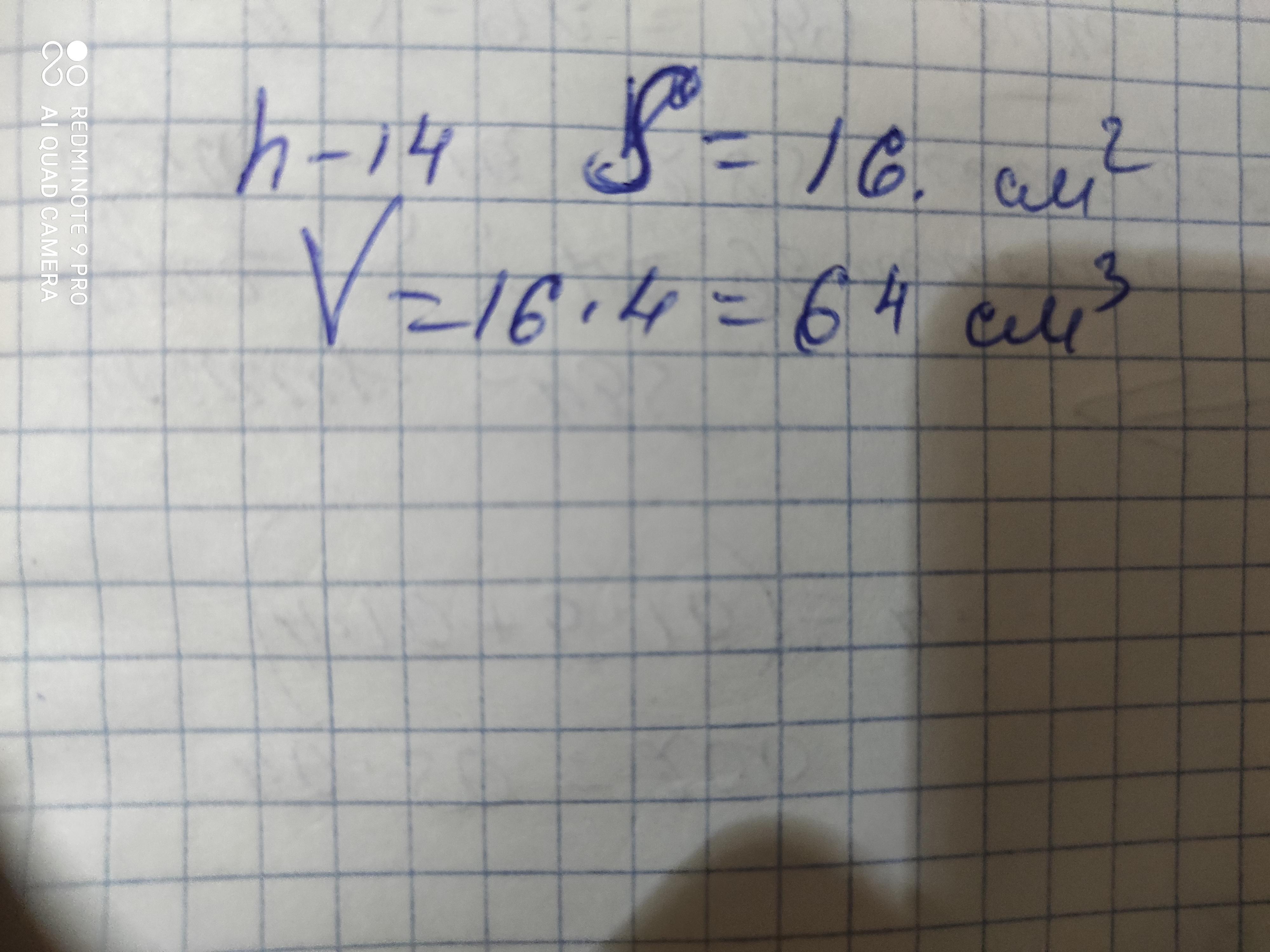Тікбұрышты параллелепипедтің биіктігі 14 см, ал табанының ауданы 16 см2 болса, көлемін тап.