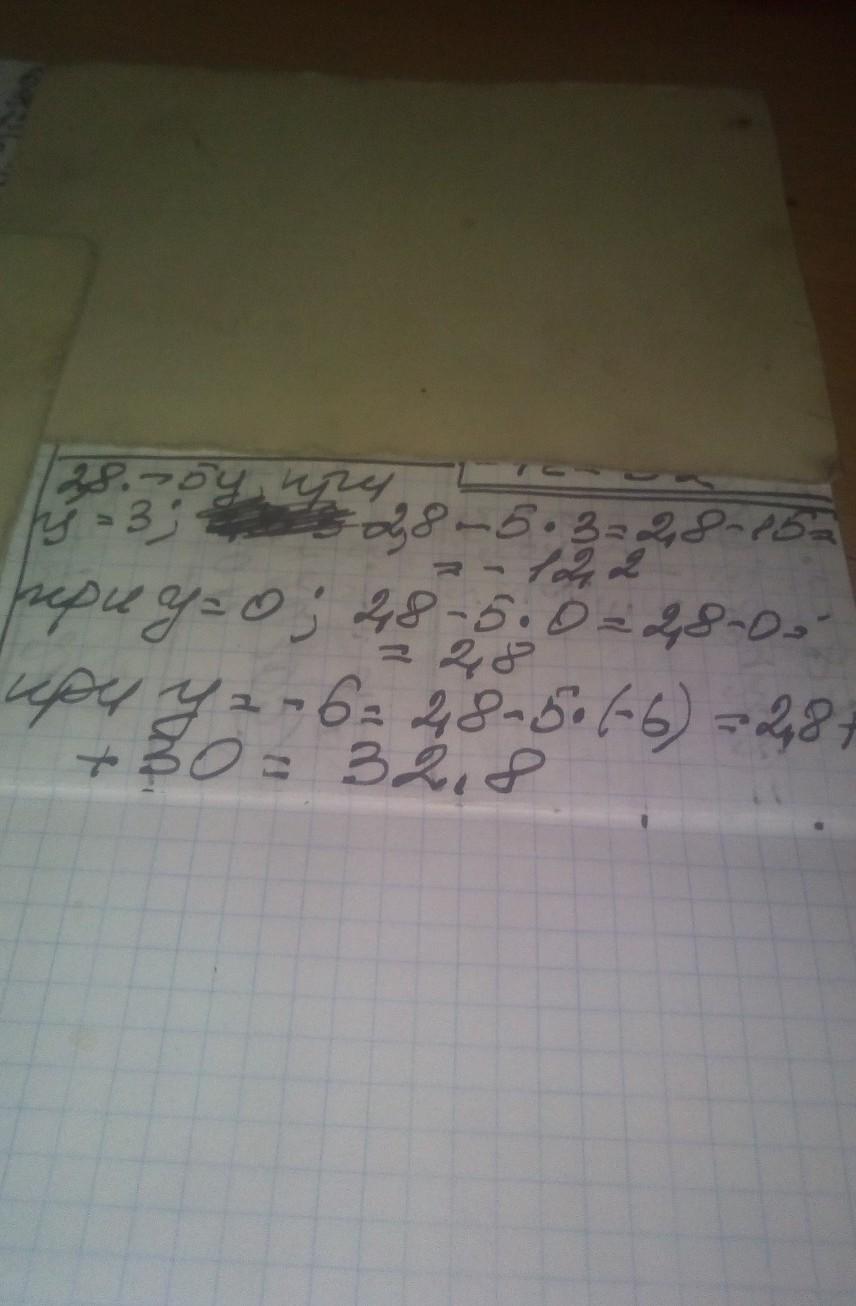 2,8-0,5у, при у=3. 2,8-0,5*3=1,3