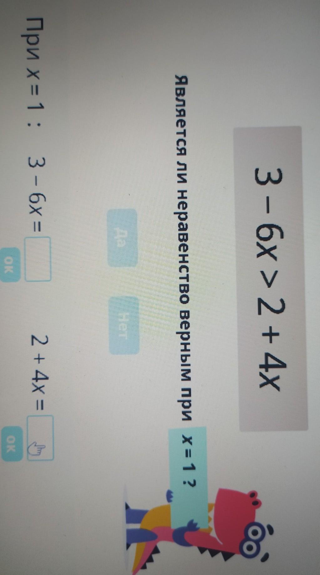 Объяснение: если х = 1 => 3-6*1 > 2+4*1