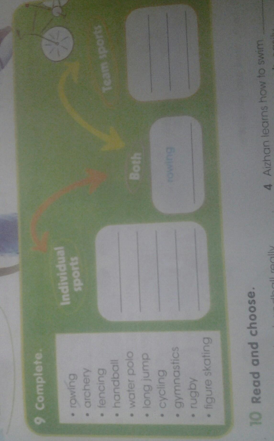Individual sports: archery, fencing, long jump, cycling, gymnastics