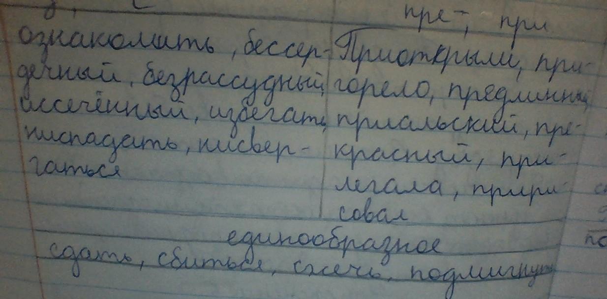 пр..аральский, пр..красный, пр..легала, пр..рисовал.