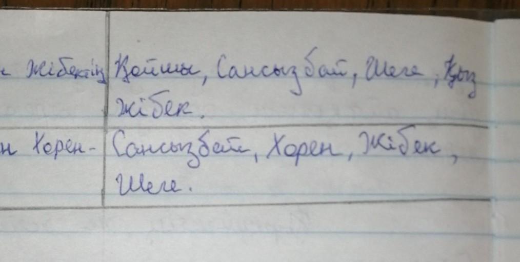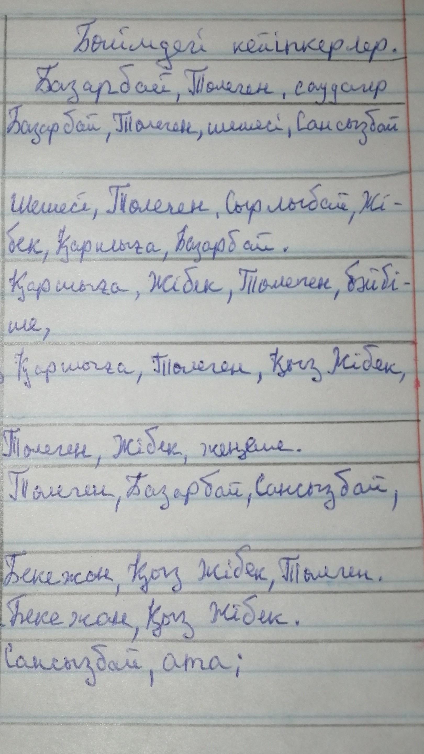 5-тапсырма. Берілген кестені дәптерлеріне толтырыңдар. Жырдың еттік желісіне байланысты оқиғаларын ретімен қойып шығындар. Білім атауы Бөліндегі кейіпкерлер