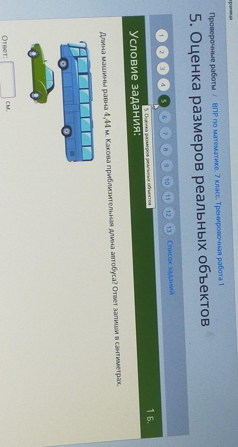длина машины равна 4,44 м.Какова приблизительная длина автобуса? ответ запишите в сантиметрах!!!