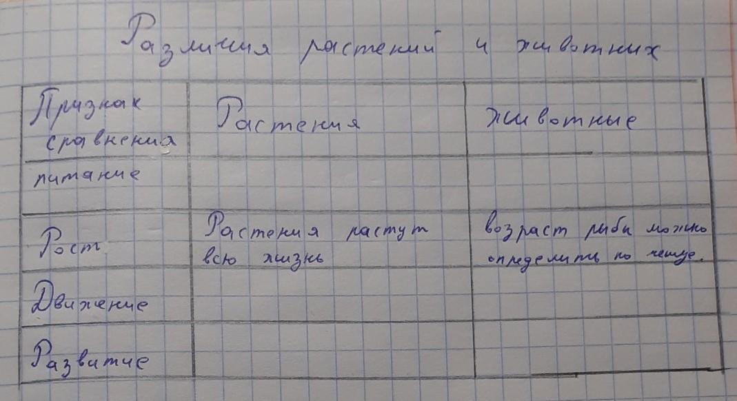 У растений питание автотрофное, а у животных гетеротрофное. Движение:растения не двигаются, а животные двигаются. Развитие у обоих происходит одинаково.