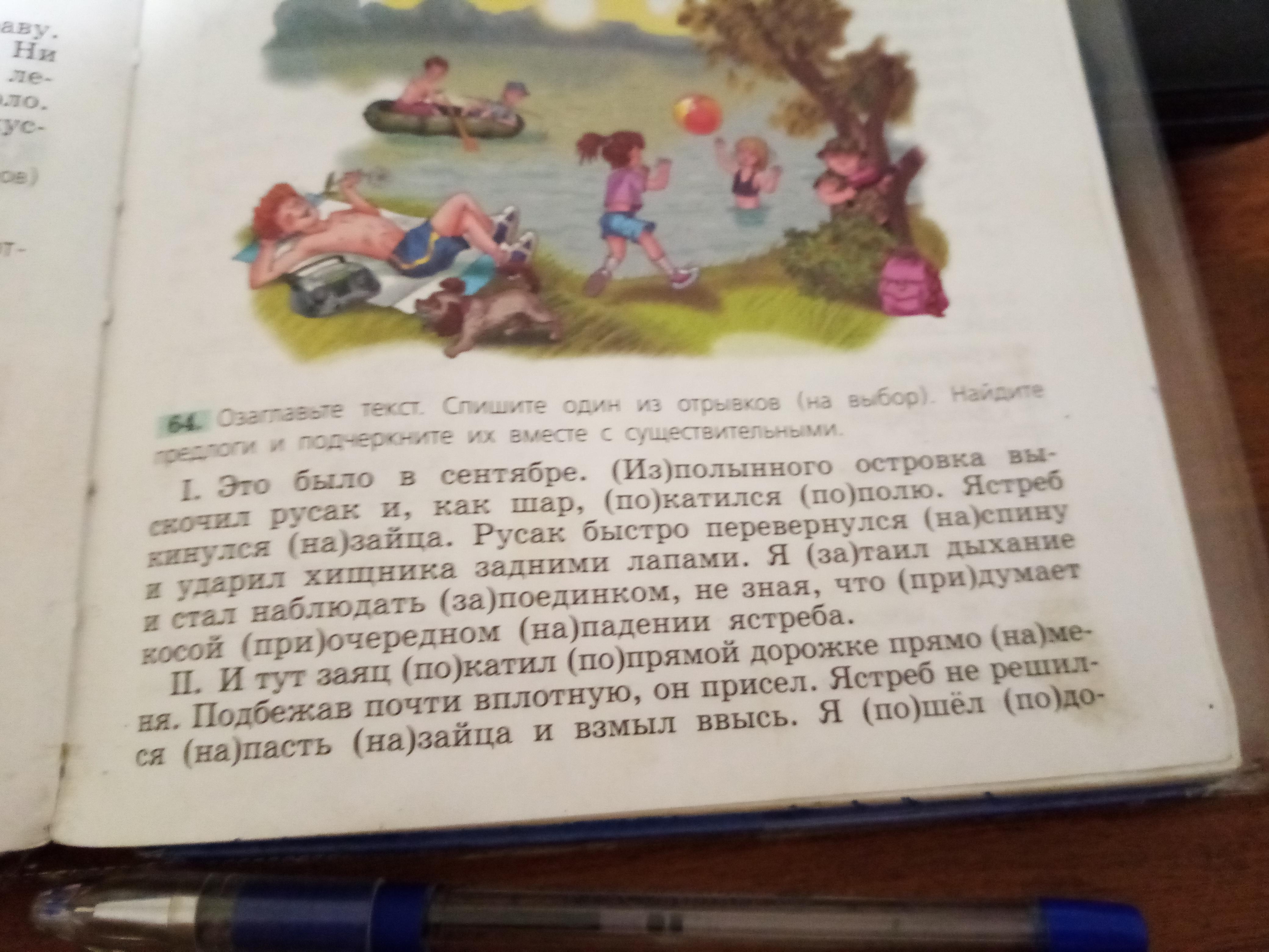 Озаглавти текст. Спишите один из отрывков (на выбор). Найдите предлоги и подчеркните их вместе с существительными