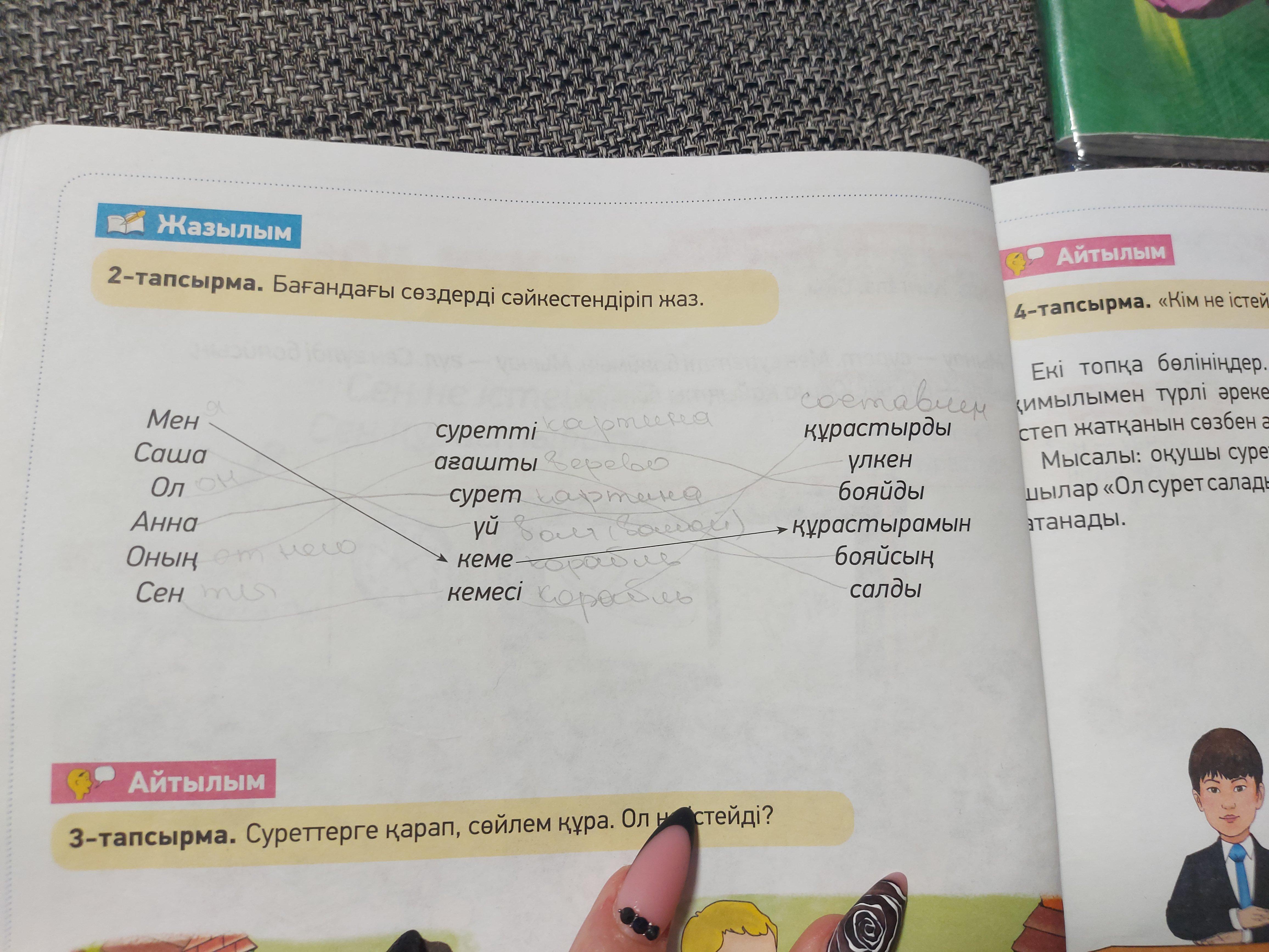 Ол суретті бояйды. Он раскрасит рисунок ( картину).