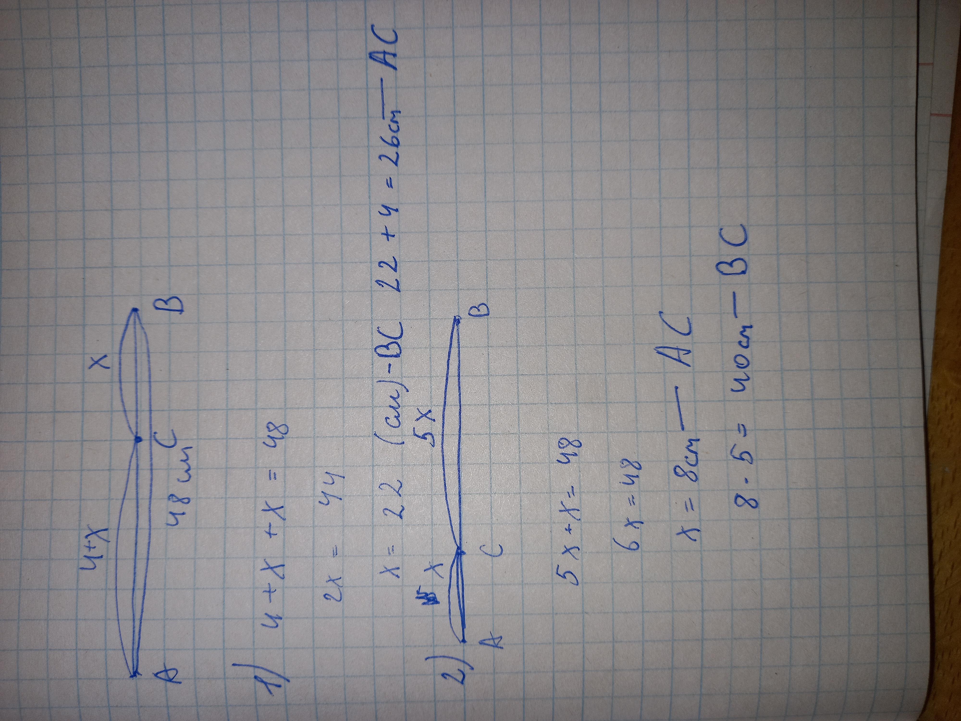 2) отрезок АС в 5 раз меньше отрезка Вс;