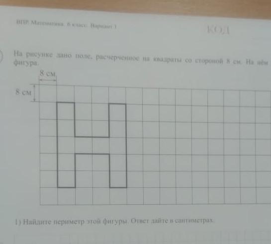 на рисунке дано поле расчерчен на квадраты со стороной 8 см на нём изображена фигура Найдите периметр этой фигуры Ответ дайте в сантиметрах