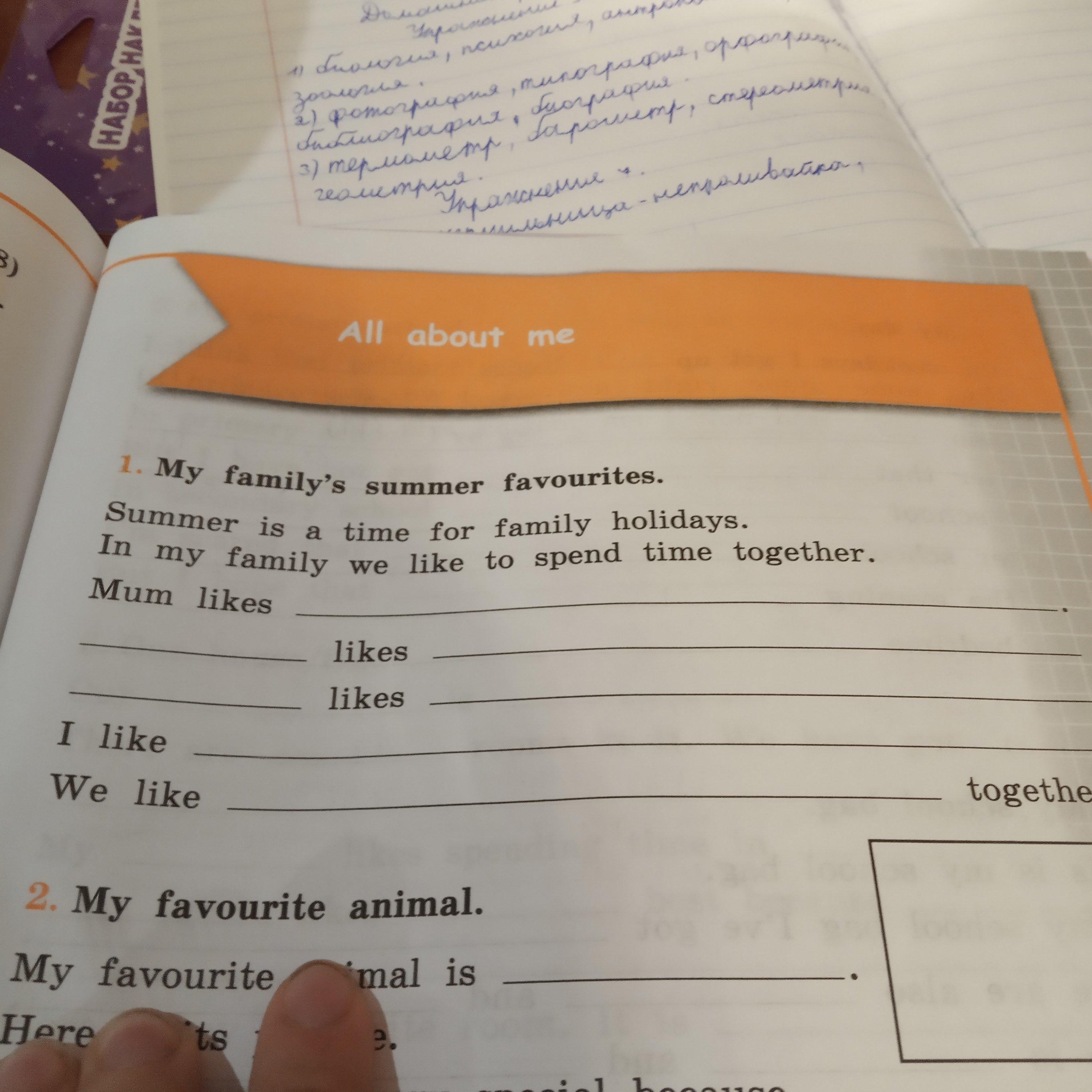 Mum likes to swim in the sea or to play volleyball on the beach.Dad likes to climb on mountains.Sister likes to walk in the park with friends.I like to play football or run.We like to travel together.