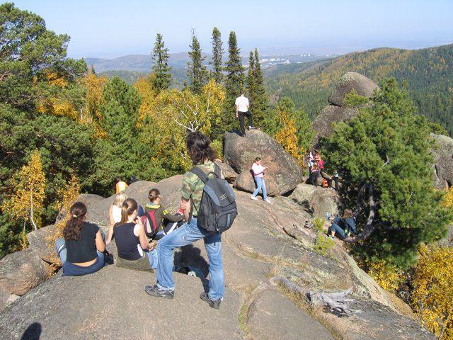 Группа школьников из Москвы желает своими глазами увидеть причудливые розово-серые скалы, возвышающиеся над тайгой, высотой до 90 метров. Им необходимо посетить заповедник "Столбы" в Красноярском крае, чтобы увидеть более 100 уникальных скал.