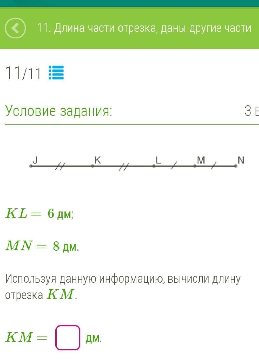 ты как MN равно LM, а КМ состоит из KL+LM, можно понять что КМ равно 8 + 6= 14