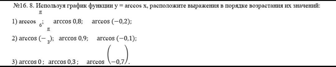 Функция y=arc cos x на промежутке -1, 1 убывающая.