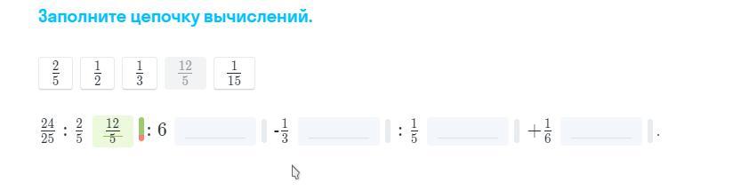 24/25÷2/5=12/5:6=2/5-1/3=1/15÷1/5=1/3+1/6=1/2