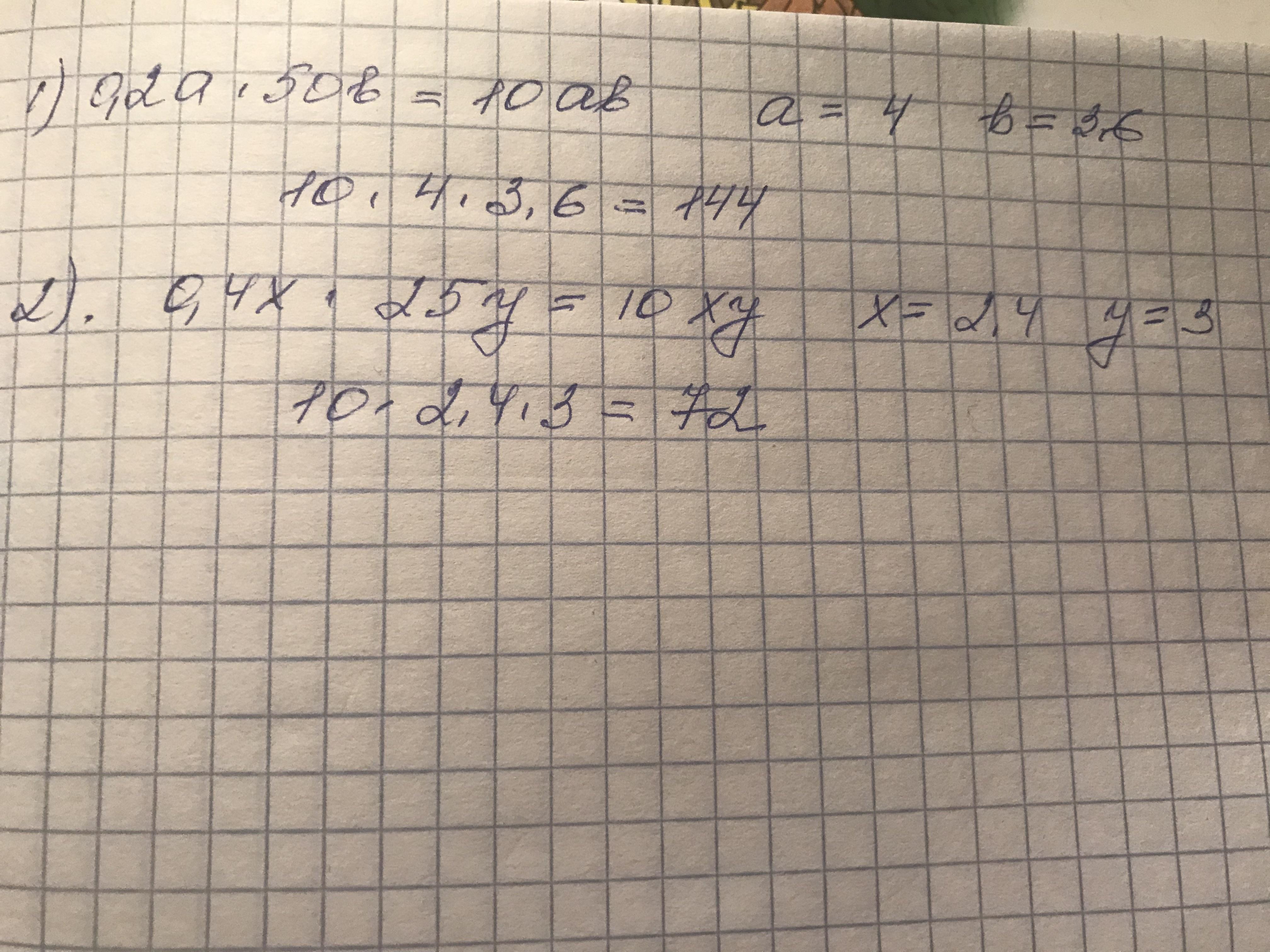 б)0,4х*25у=10ху при х=2,4 и у=3 10*2,4*3=72