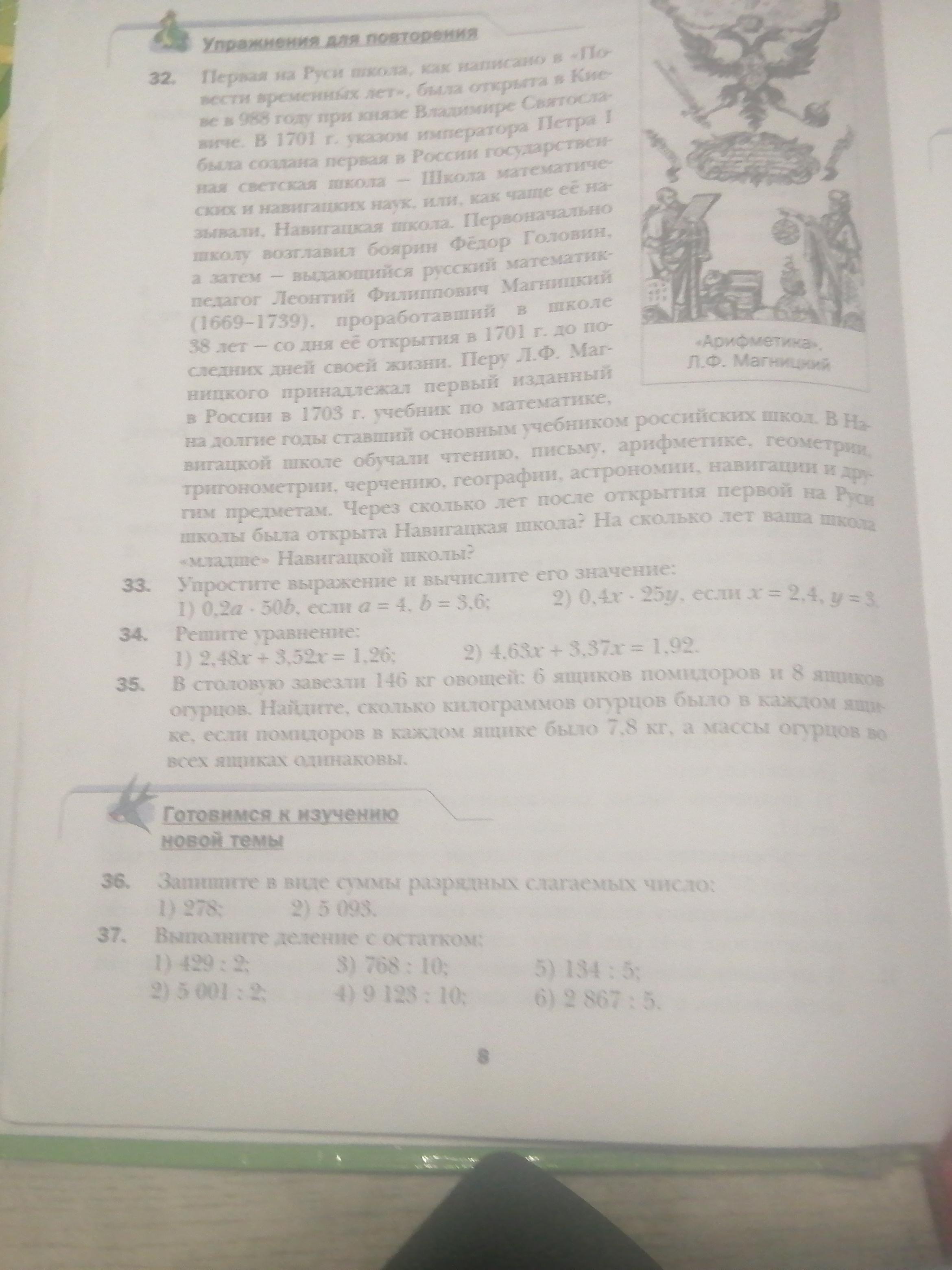 33. а) 0,2а*50в=10ав при а=4 и в=3,6 10*4*3,6=144