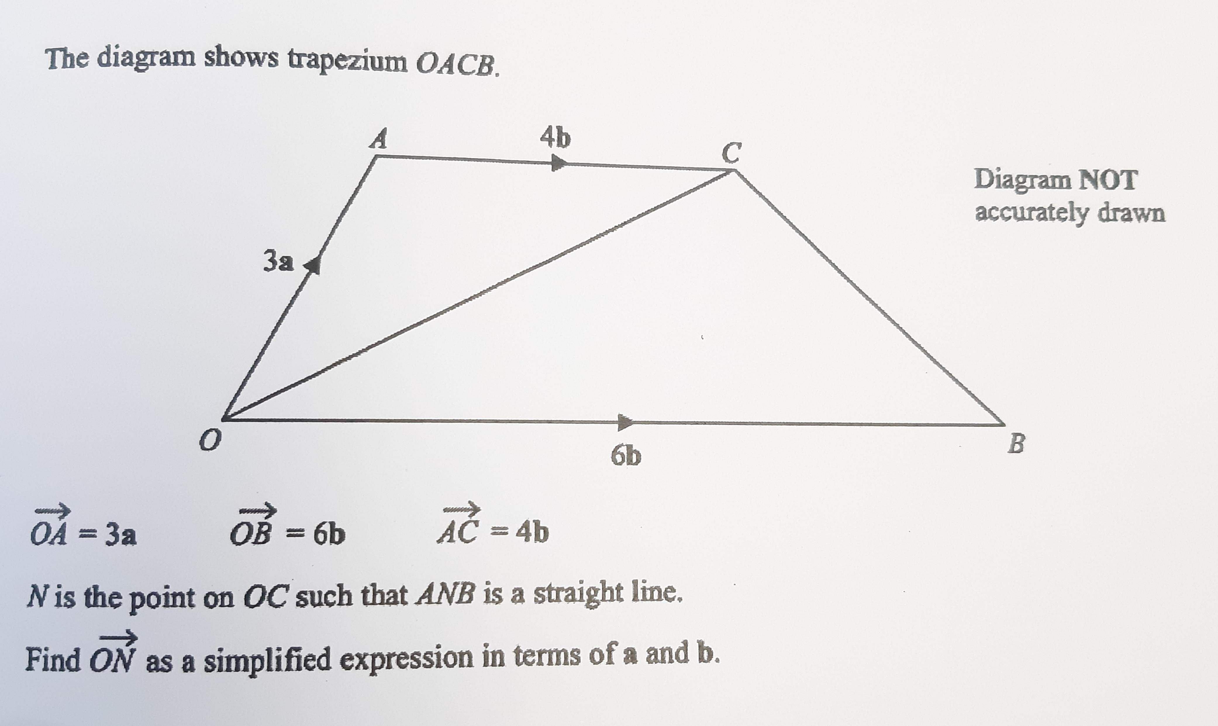 Выразите вектор ON через a и b, в ответе записать упрощённое выражение.
