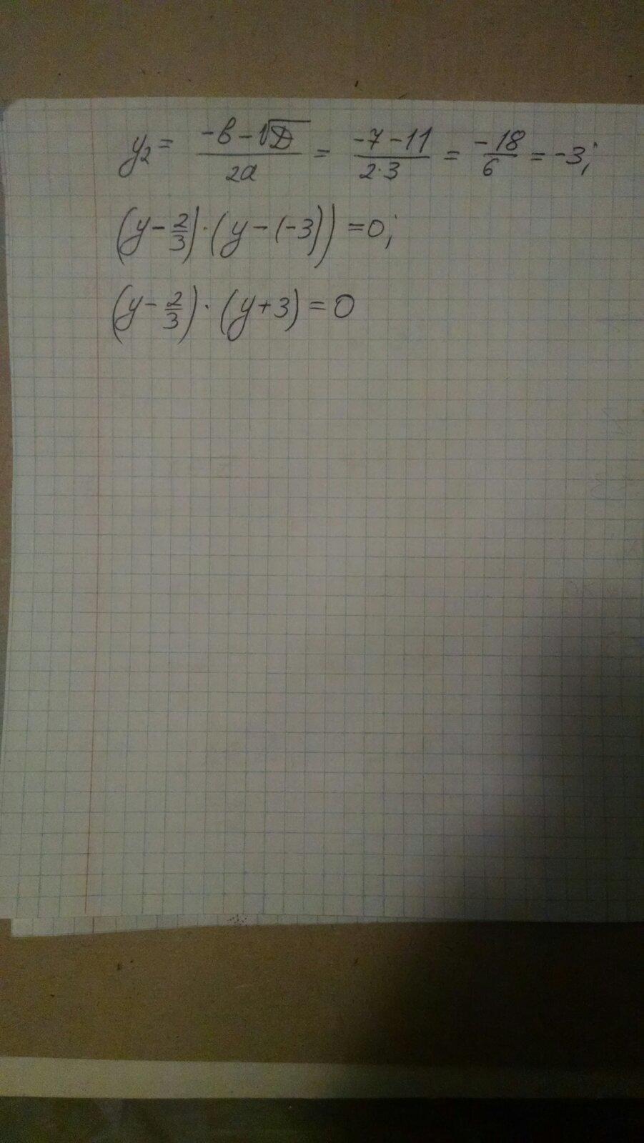 б) 3y²+7y-6=(y-(2/3))×(y+3).