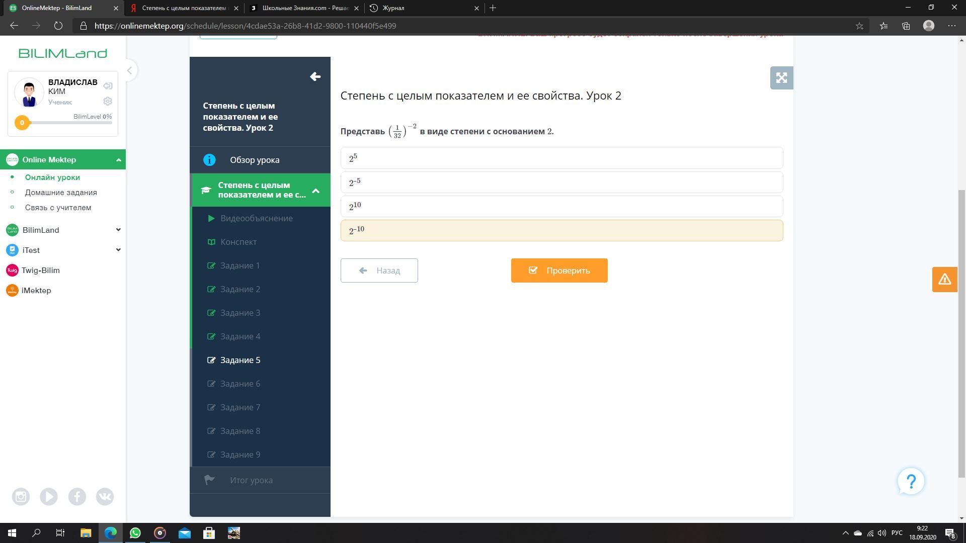 Представь(1/32)степень -2 в виде степени с основанием 2.