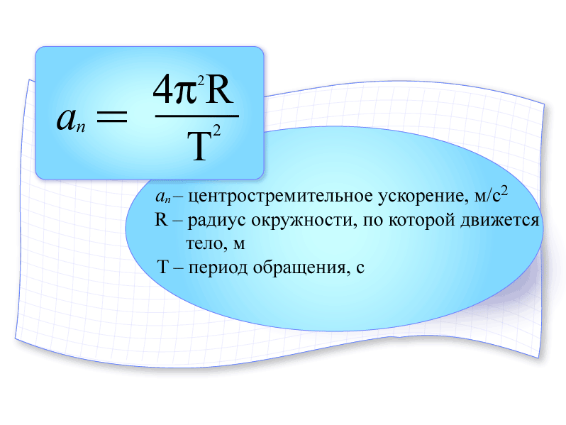 Записать формулы для определения:а)скорости и перемещения равноускоренного движения,б)скорости и перемещения при свободном падении, в)первой космической скорости, г)центростремительного ускорения.
