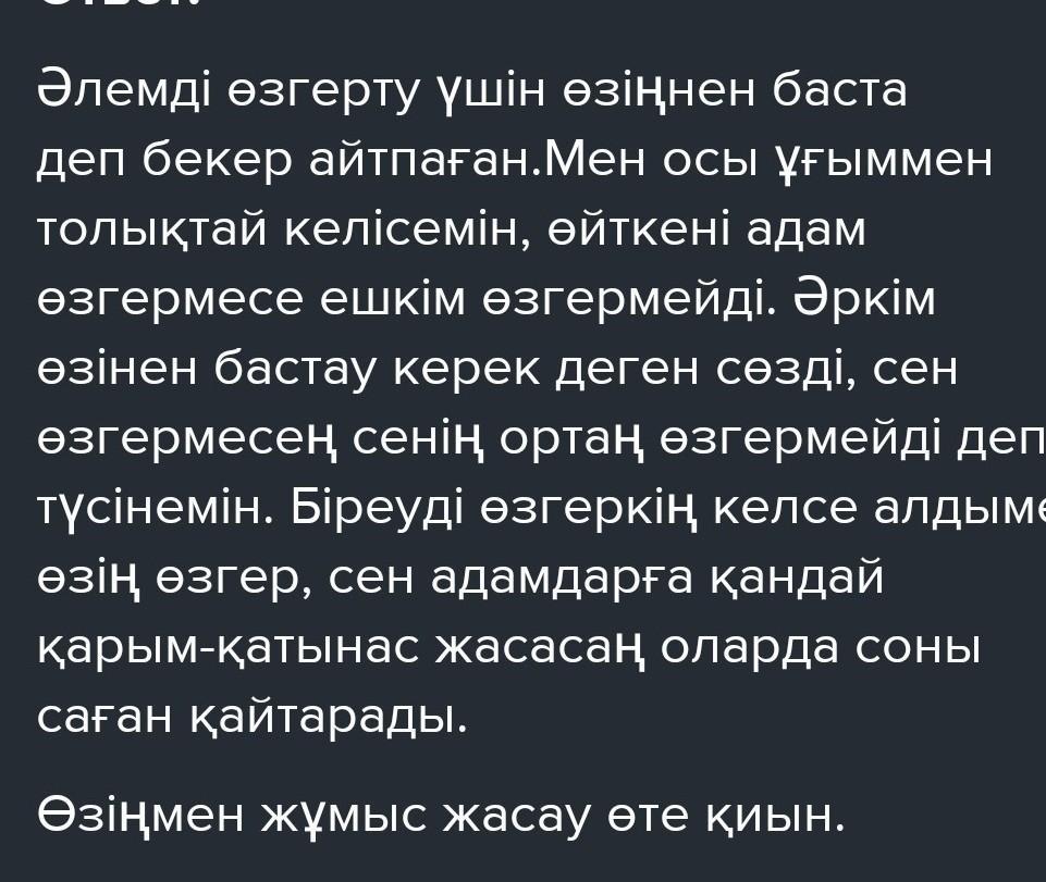5 тапсырма Выполните 5-тапсырма 33 бет. Нужно прочитать стихотворение и написать мини сочинение на тему "Әркім өзінен бастауы керек". (Каждый должен начать с себя) пожалуйста помогите нужно срочно сегодня