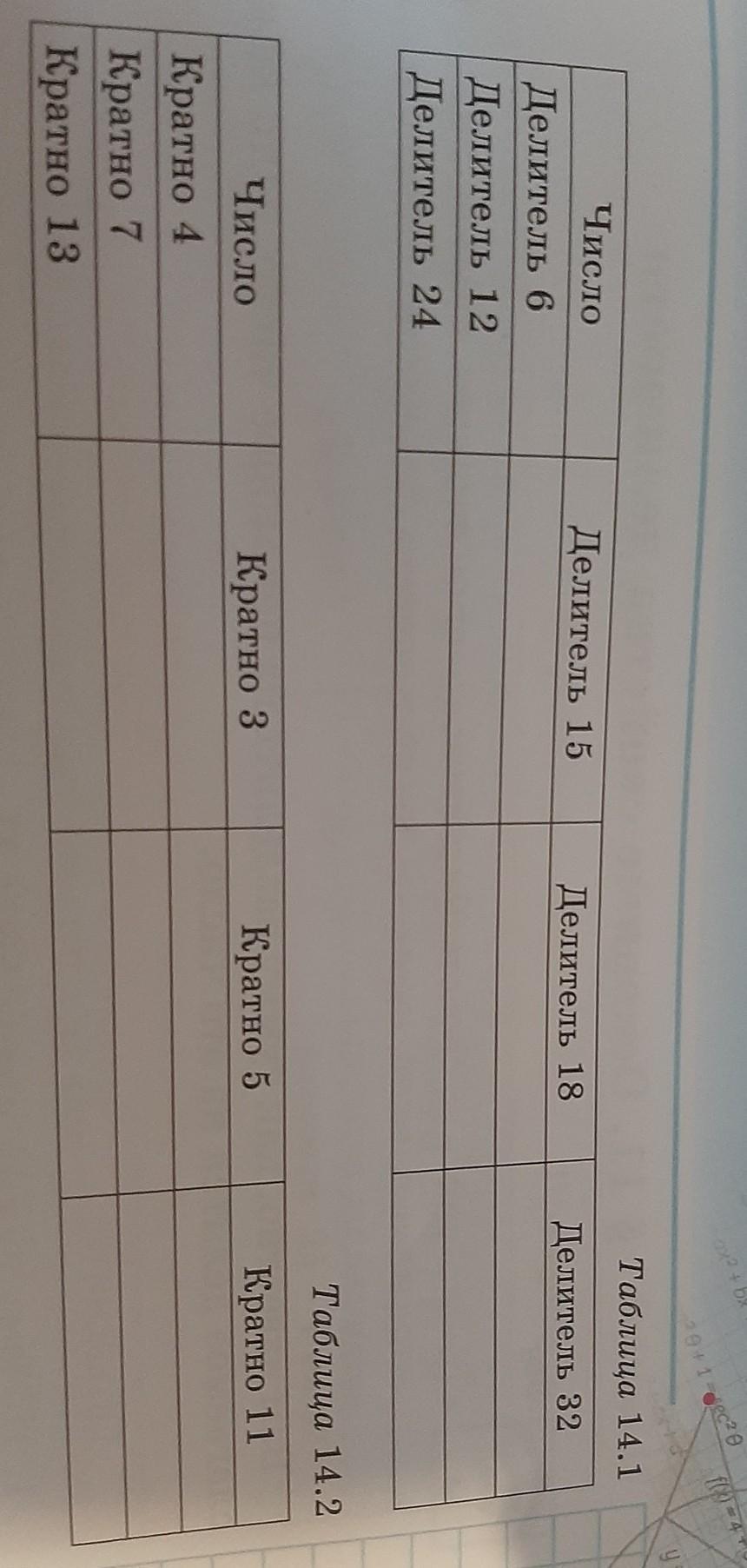 Заполните таблицу 14,вписывая в пустые клетки по два числа,удовлетворяющие обоим условиям