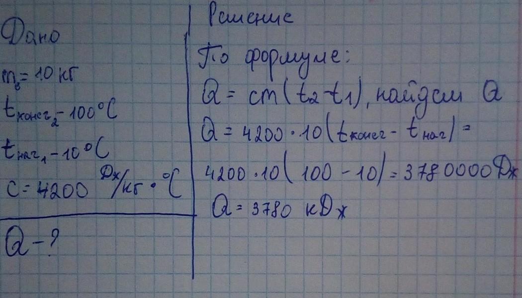 задача 1. В емкость налита вода массой 10 кг. Какое количество теплоты нужно передать воде температурой 10 градусов, чтобы она закипела? (температура кипения воды 100 0С)