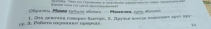Эта девочка говорит быстро-девочка,говори быстрее.Друзья всегда помогают друг другу-друзья,всегда помогайте друг другу.Ребята охраняют природу-ребята,охраняйте природу.
