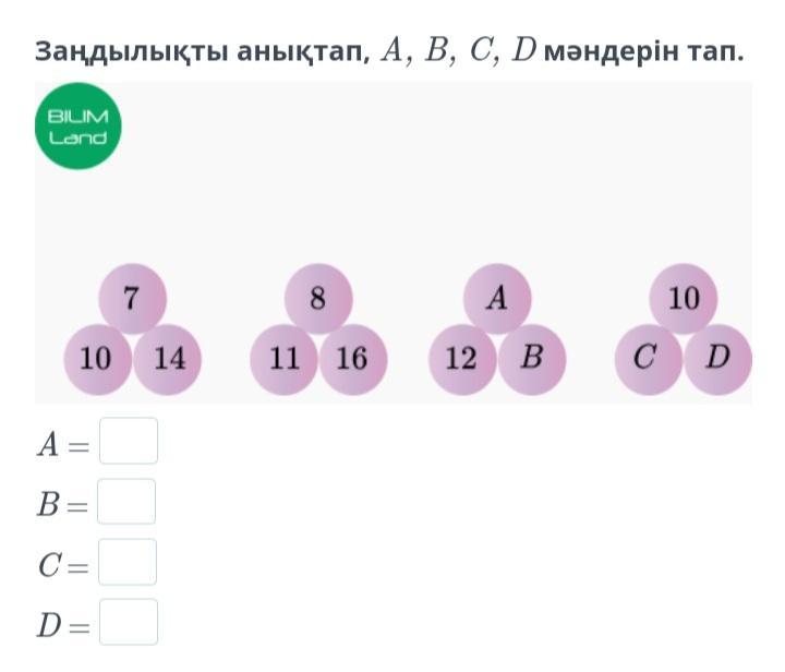 Заңдылықты анықтап A,B,C,D мәндерін тап
