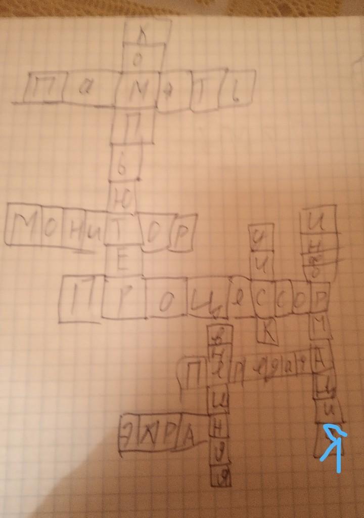 Составьте кроссворд включая слова память, компьютер, диск, процессор, экран, монитор, внешняя, информация, передача.